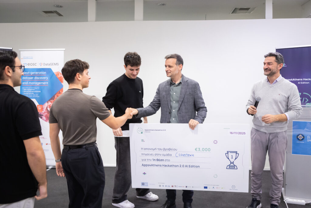 Ομάδα πρωτοετών φοιτητών του Τμήματος Πληροφορικής & Τηλεματικής του Χαροκοπείου Πανεπιστημίου συμμετείχε στις 15 και 16 Νοεμβρίου στον Μαραθώνιο Καινοτομίας «Apps4Athens Hackathon 2.0: AI Edition», που διοργάνωσε ο Δήμος Αθηναίων με στόχο τον ψηφιακό μετασχηματισμό της πόλης μέσω της αξιοποίησης της Τεχνητής Νοημοσύνης.