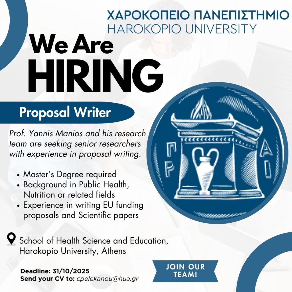 Η ερευνητική μας ομάδα στο Χαροκόπειο Πανεπιστήμιο αναζητά ερευνητή/τρια, κάτοχο μεταπτυχιακού τίτλου σπουδών, με: