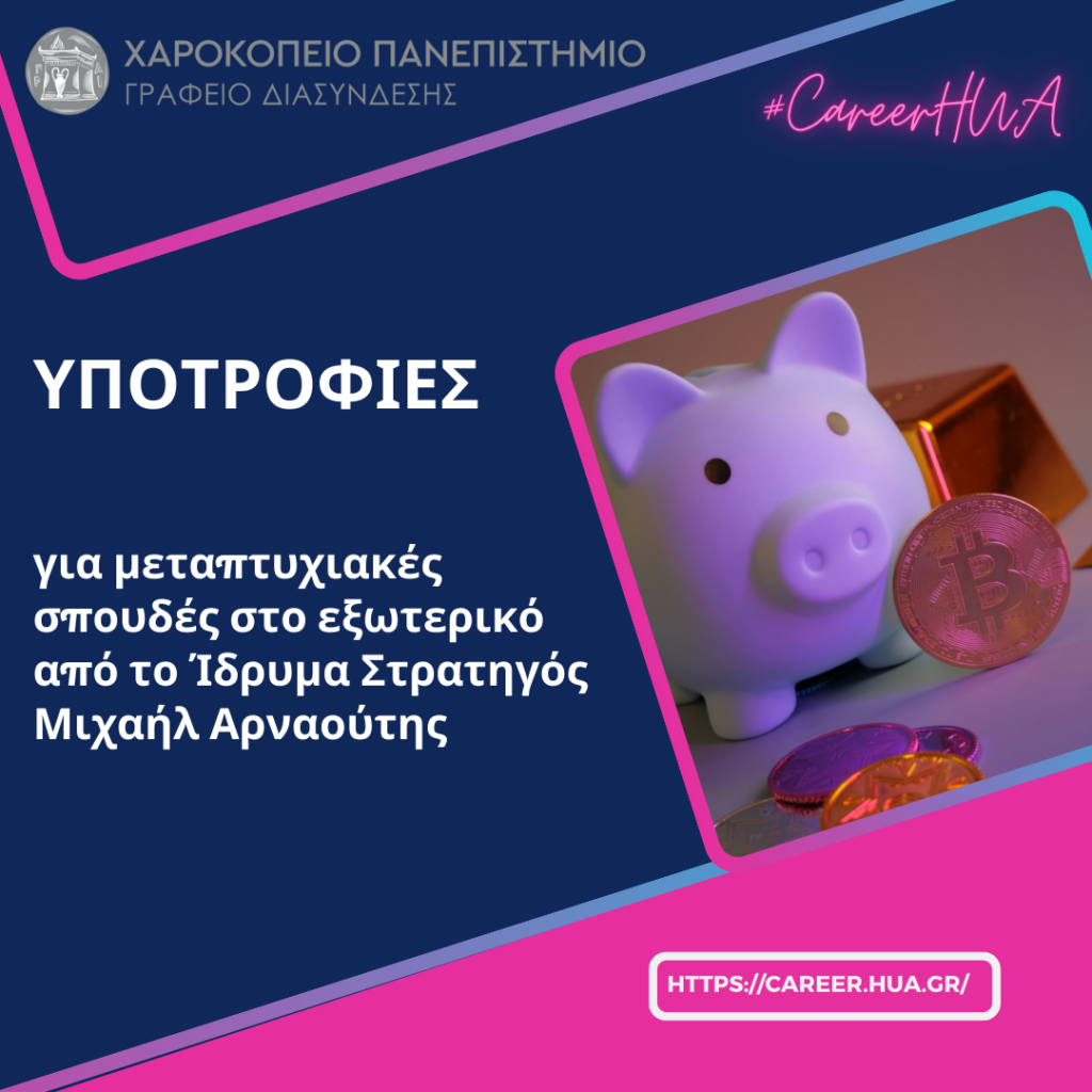 Το ίδρυμα Στρατηγός Μιχαήλ Αρναούτης προκηρύσσει την απονομή υποτροφίας για μεταπτυχιακές σπουδές στο εξωτερικό (χώρες της ευρωπαϊκής ένωσης ή της Βορείου Αμερικής) για το ακαδημαϊκό έτος 2026 / 2027 στους τομείς: